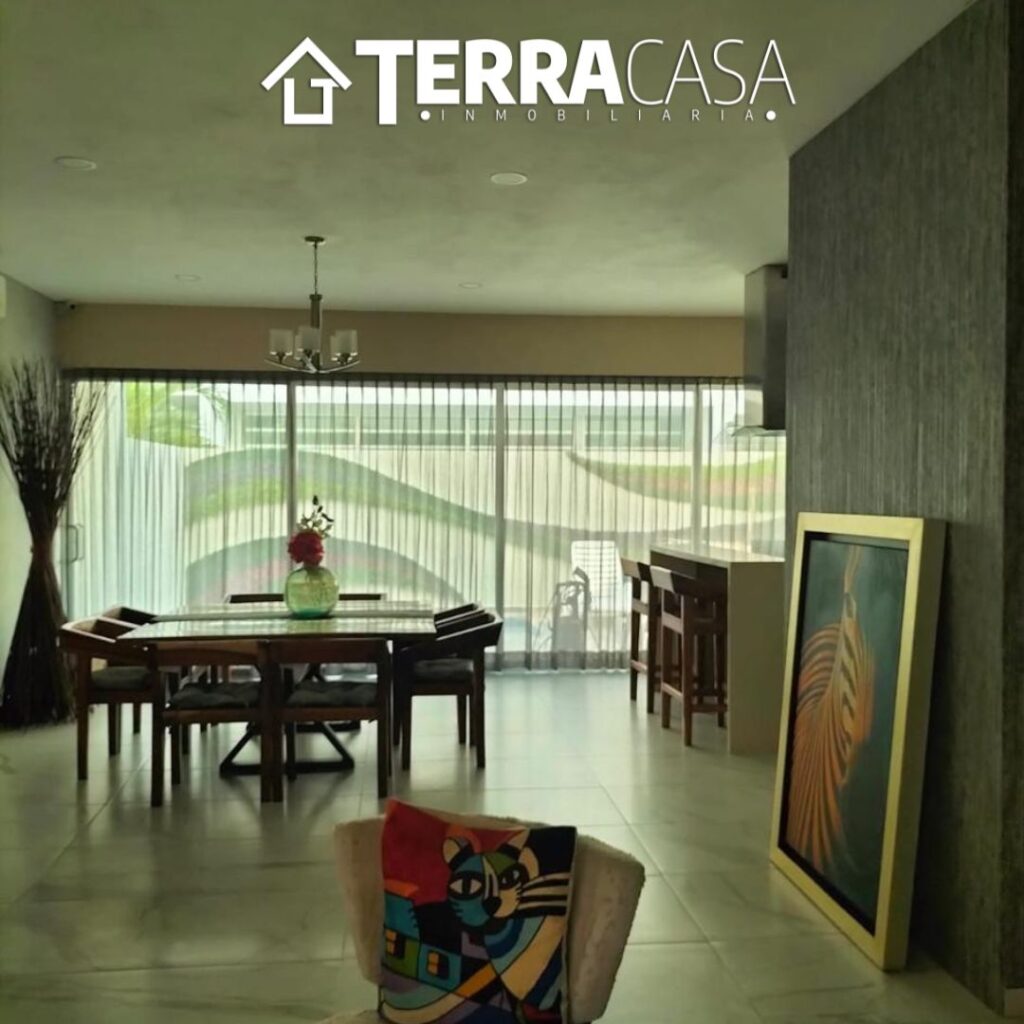 • Sala y comedor con vista a la alberca