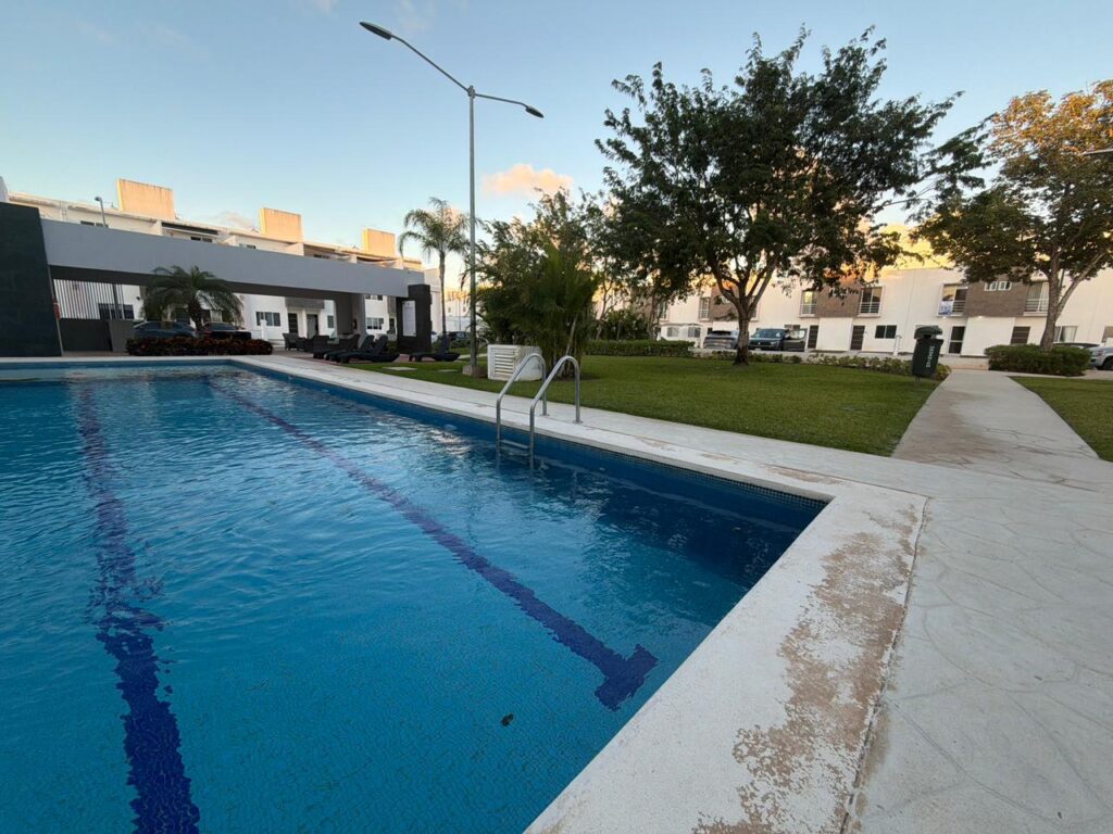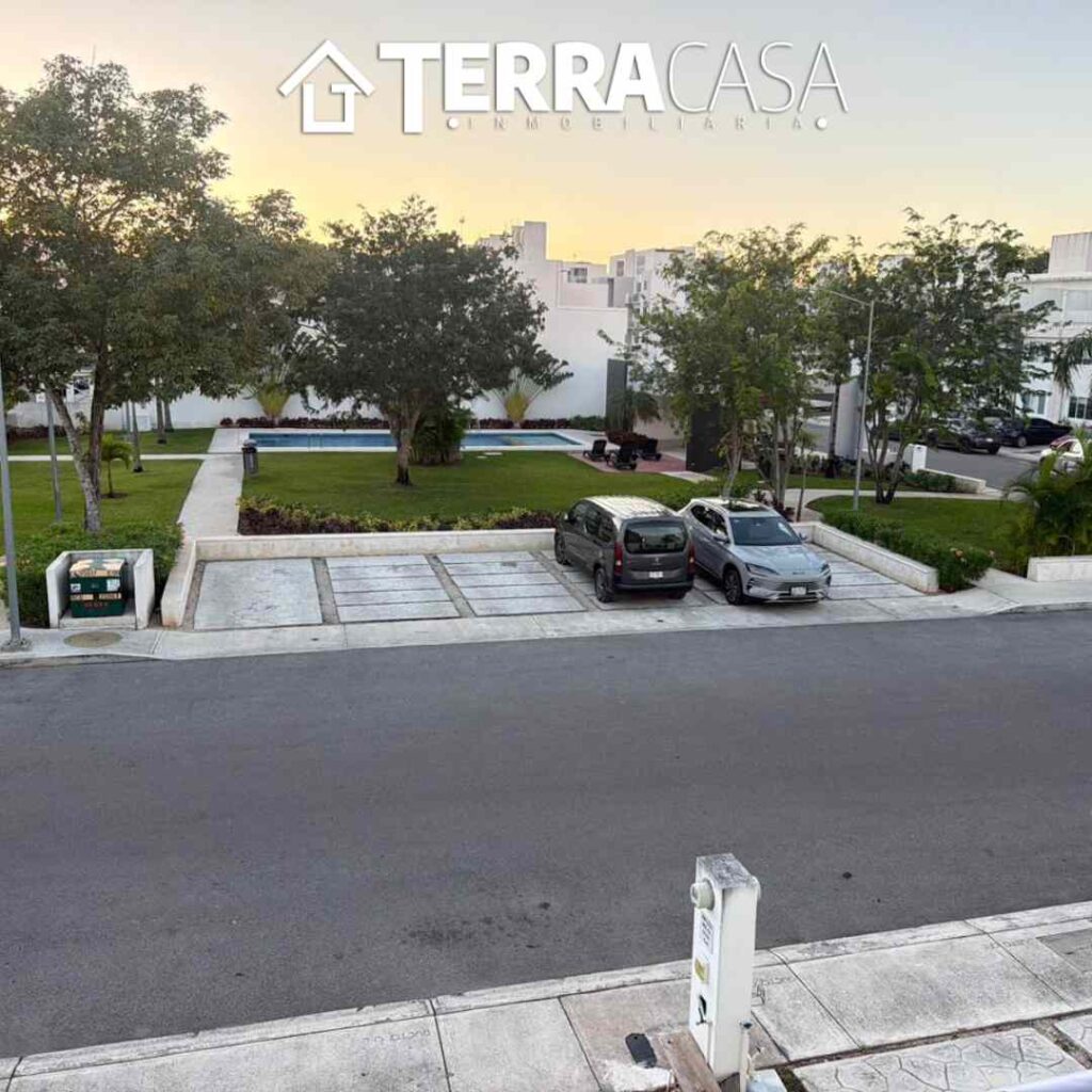 Ubicada frente al área verde con alberca, lo que brinda una vista agradable y un entorno ideal para disfrutar en familia.