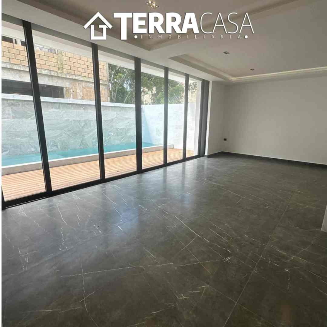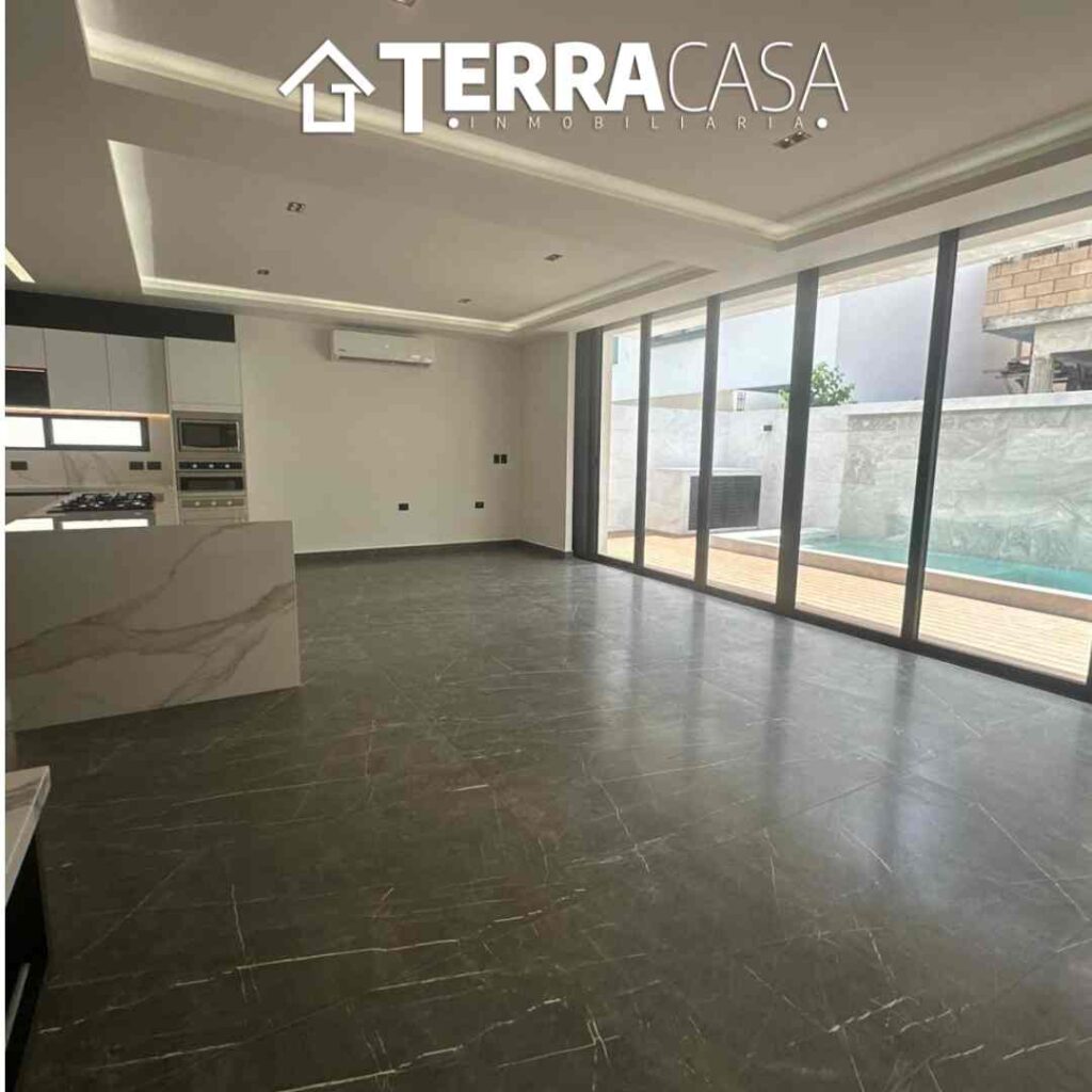 • Sala y comedor con vista directa a la alberca.